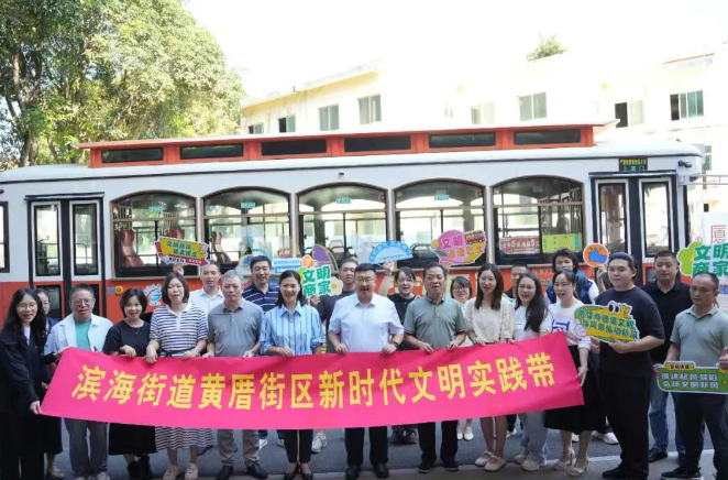 黄金丝带系,铛车传新风6月6日,“黄金丝带,文明之行”滨海街道黄厝街区新时代文明实践带启动仪式顺利举行,启动仪式后,鹭城巴士“文明铛铛车”正式发车,嘉宾们乘坐“文明铛铛车”欣赏黄厝风景,感受着文明与自…